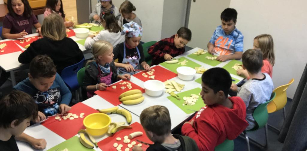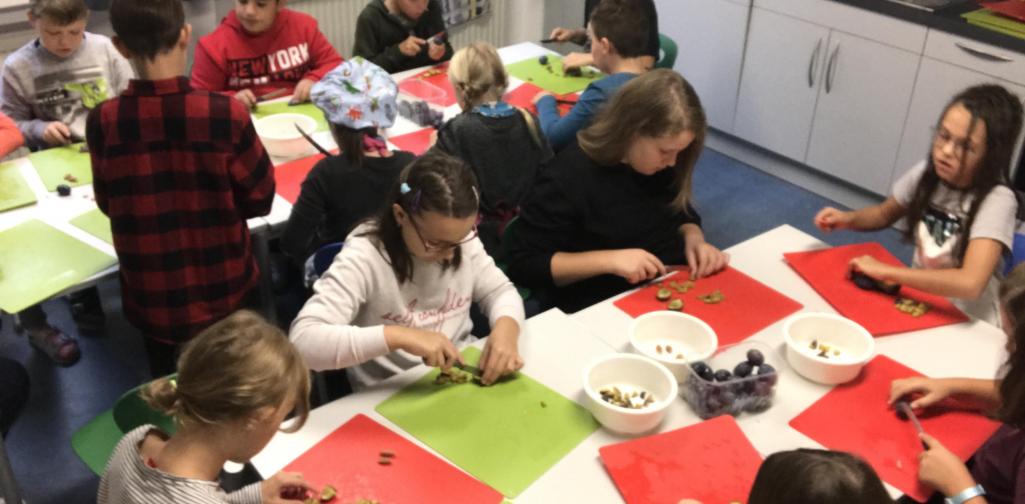 Einmal Pro Monat bereitet eine Klasse für die ganze Schule eine gesunde Jause vor - der Erlös wird gespendet.