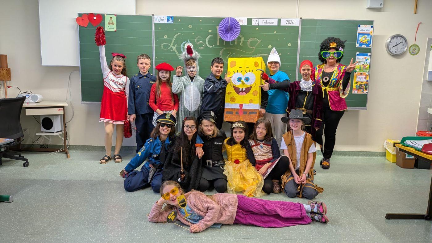 Am Faschingsdienstag, dem 17. Februar 2026, wurde an unserer Schule wieder ausgelassen gefeiert. In bunten und kreativen Kostümen verwandelten sich die Kinder in Prinzessinnen, Superhelden, Polizisten, Zauberer und viele weitere fantasievolle Figuren. Die Vielfalt der Verkleidungen sorgte für eine fröhliche und farbenfrohe Atmosphäre im gesamten Schulhaus.