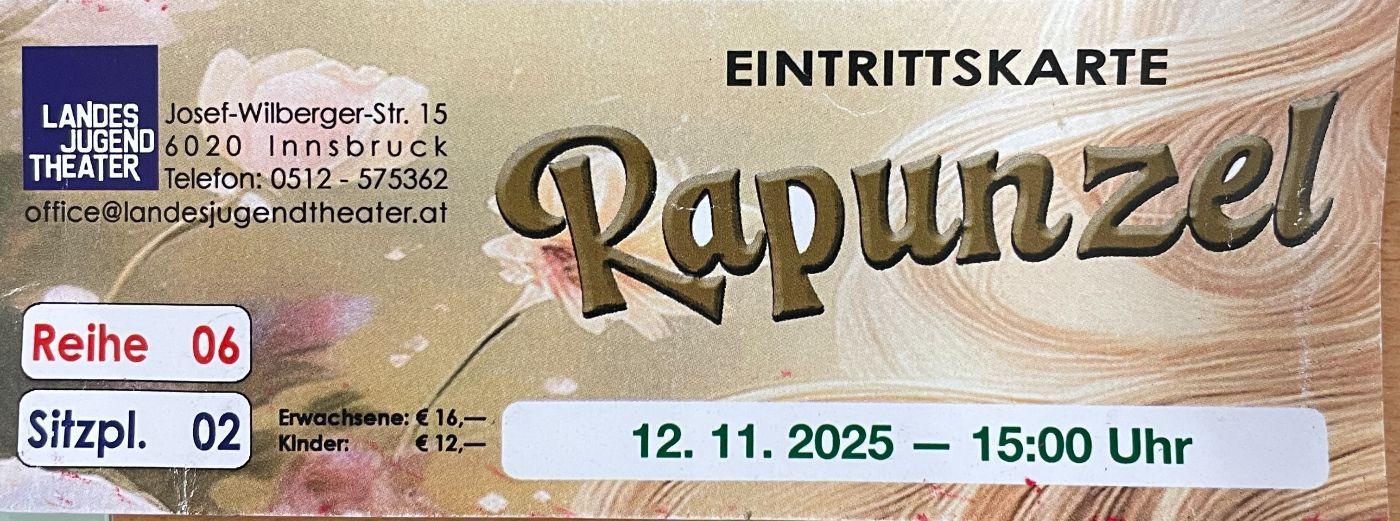 Am 12. November 2025 besuchten alle Klassen der Volksschule Bruggen gemeinsam das Landesjugendtheater in Innsbruck. Um 15:00 Uhr startete die Vorstellung des Stücks Rapunzel, das die Kinder mit viel Begeisterung verfolgten. Der Ausflug bot nicht nur ein besonderes kulturelles Erlebnis, sondern auch die Gelegenheit, gemeinsam Theaterluft zu schnuppern und in die Welt des Märchens einzutauchen.