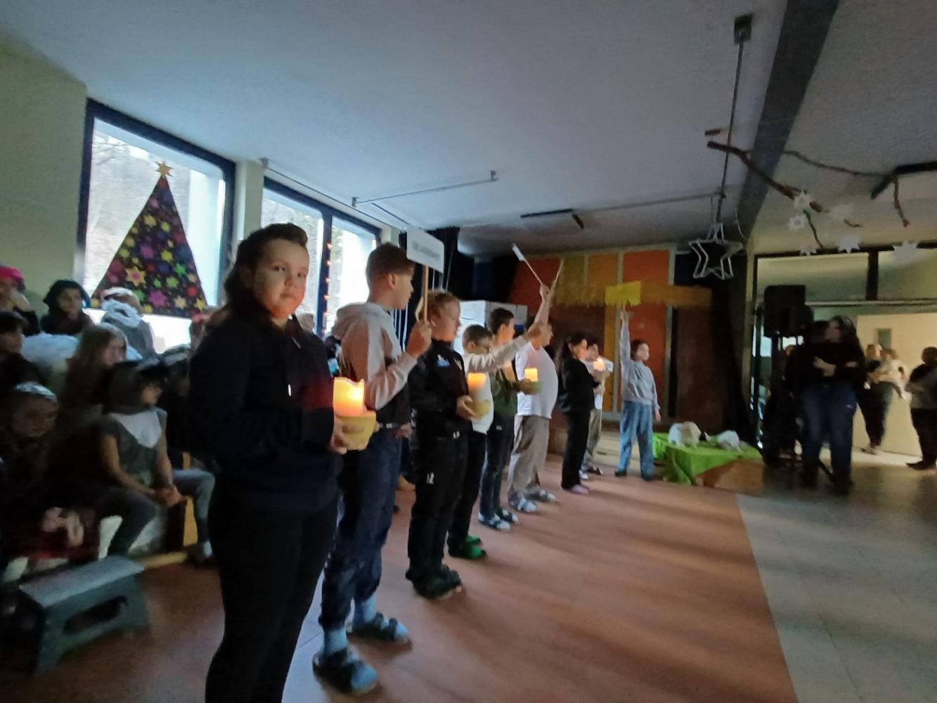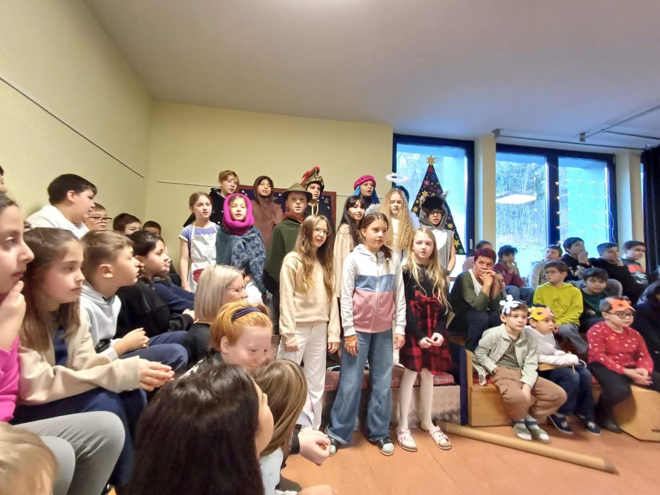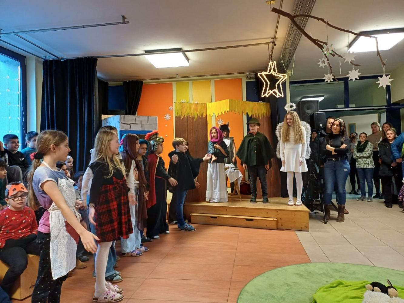 Am 19. Dezember 2025 fand an unserer Schule die traditionelle Weihnachtsfeier statt. In stimmungsvoller Atmosphäre präsentierten die Schüler:innen ein abwechslungsreiches Programm. Neben dem Vorspielen verschiedener Musikinstrumente begeisterten die Kinder mit Liedern und einem liebevoll gestalteten Theaterstück.