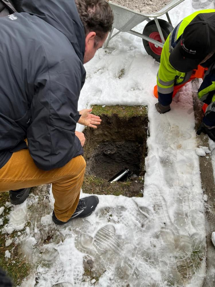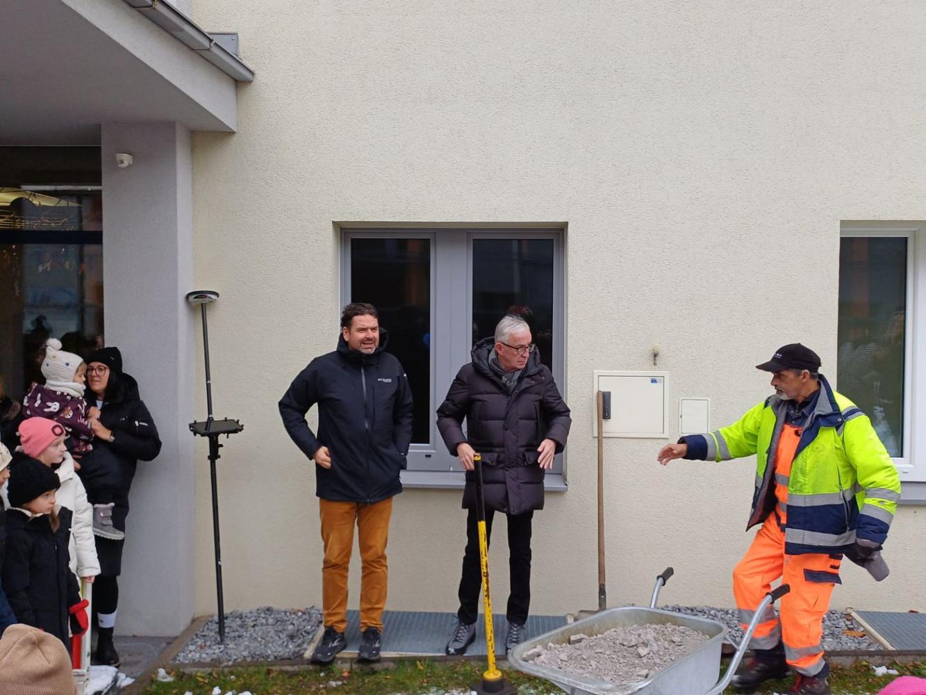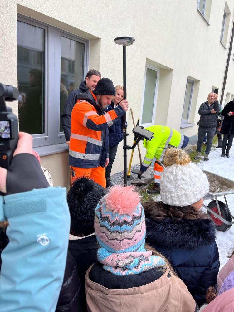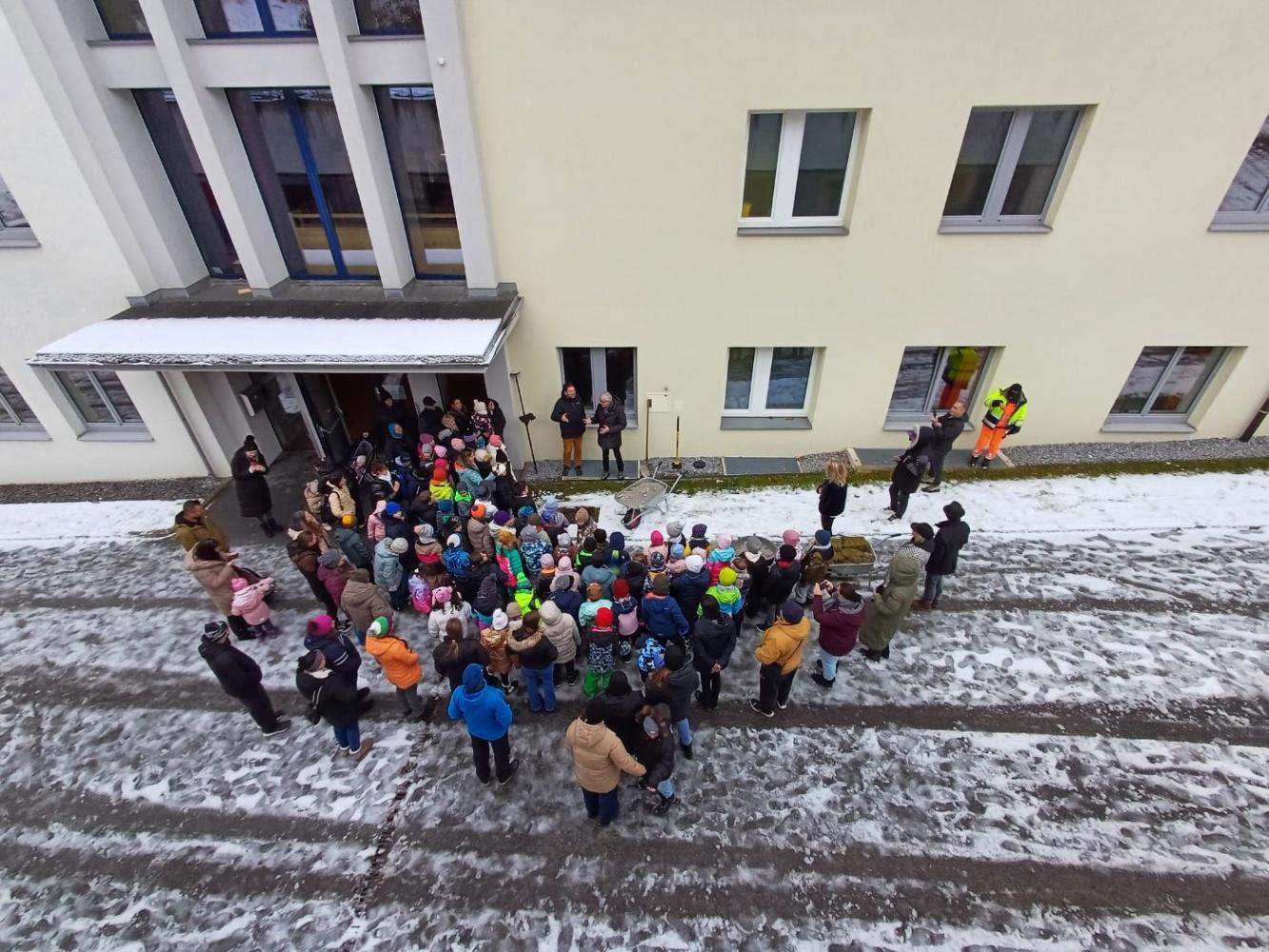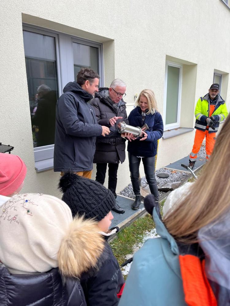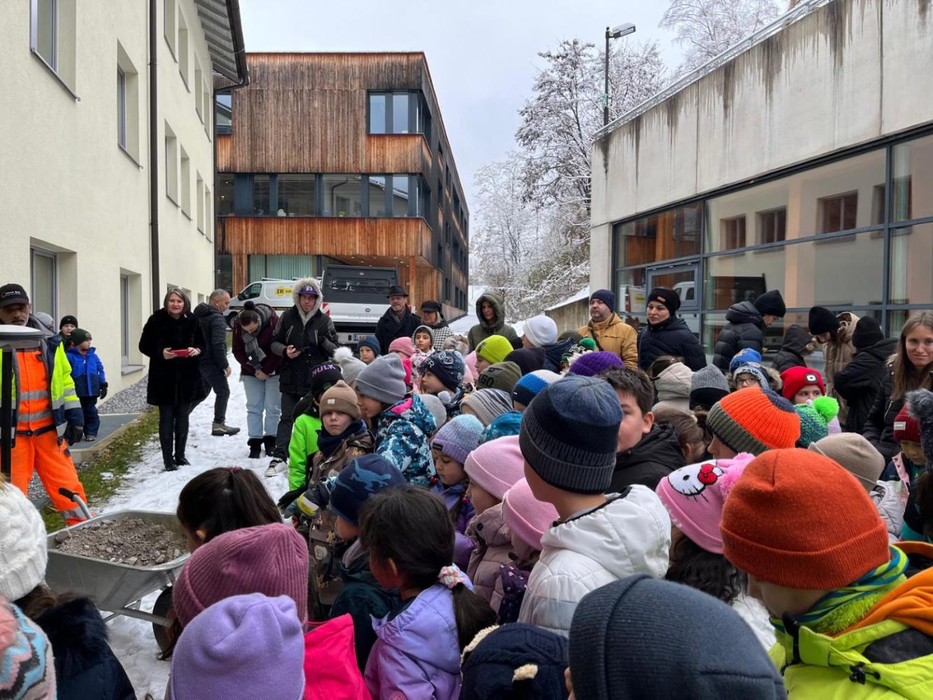 Die Lehrer:innen füllten mit ihren Schüler:innen im Vorfeld eine Zeitkapsel mit kleinen Erinnerungsstücken aus ihrem Schulalltag. Diese wurde anschließend am 25.11.2025 feierlich vor dem Schuleingang vergraben – mit dem klaren Auftrag an die Zukunft: Sie soll erst in 50 Jahren wieder ausgegraben und geöffnet werden.